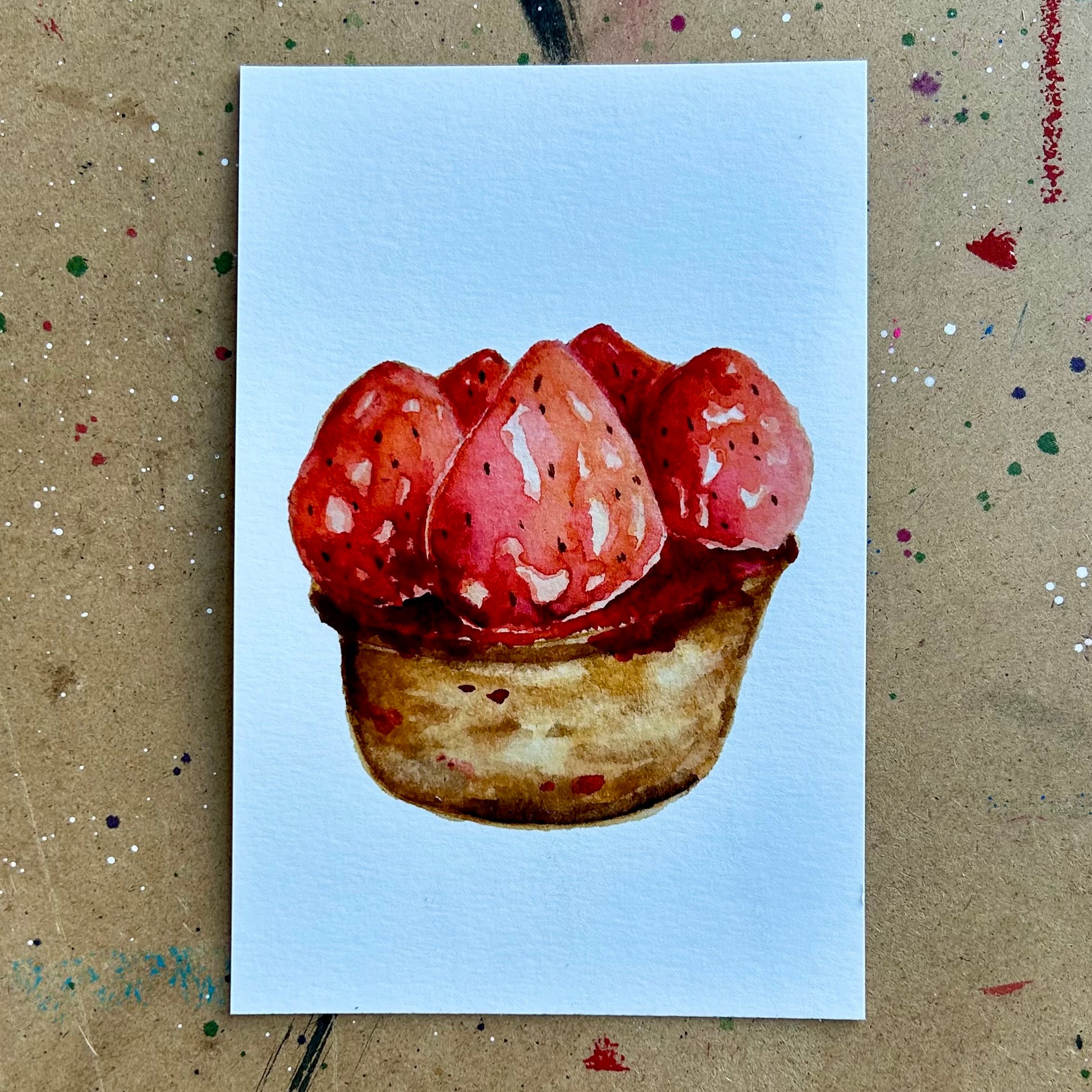 Enjoy the playful spirit of a homemade strawberry tart captured in this Giclee print of my original watercolor art. Sized at 4" x 6", it dazzles with red hues and a velvety matte finish. Keep in mind, the print is unframed, just waiting for your personal style!